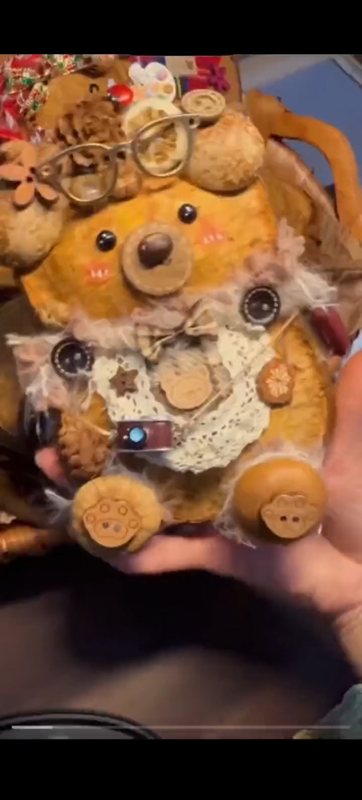 This unique piece is handcrafted from entada bean pods, a rare natural material with warm, earthy texture and beautiful organic grain. Each bean pod is carefully shaped and transformed into a character, then finished with soft wool details, natural wood accents, and hand-sewn elements, giving it a cozy feel.