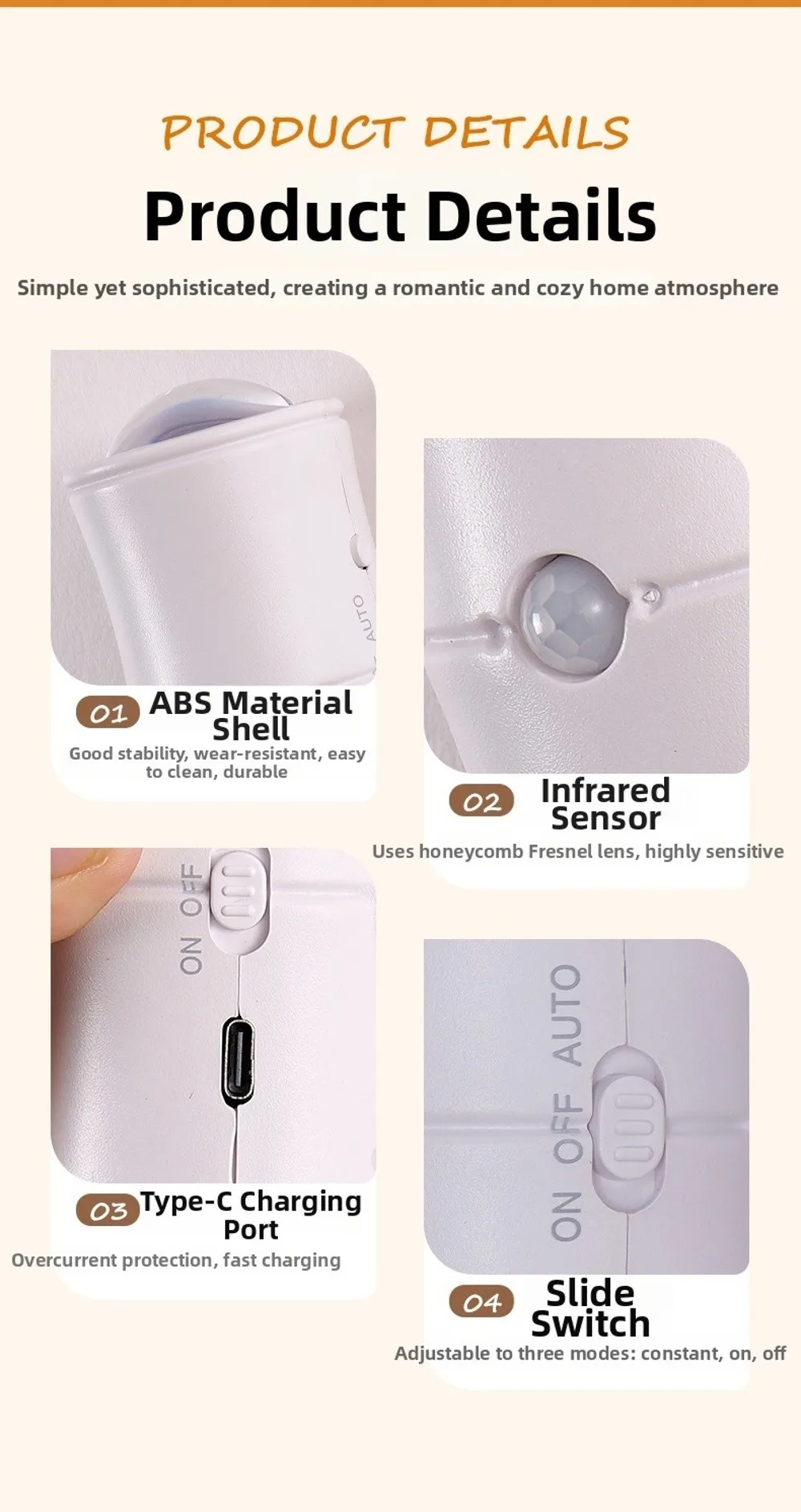 Human Body Detection Night Light Automatic Sensing 7 Color Wall Lamp